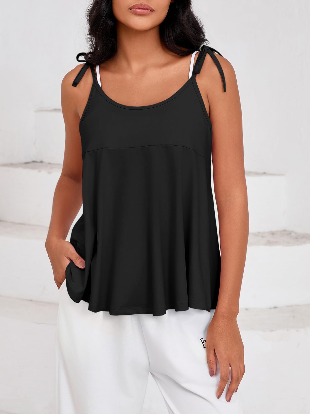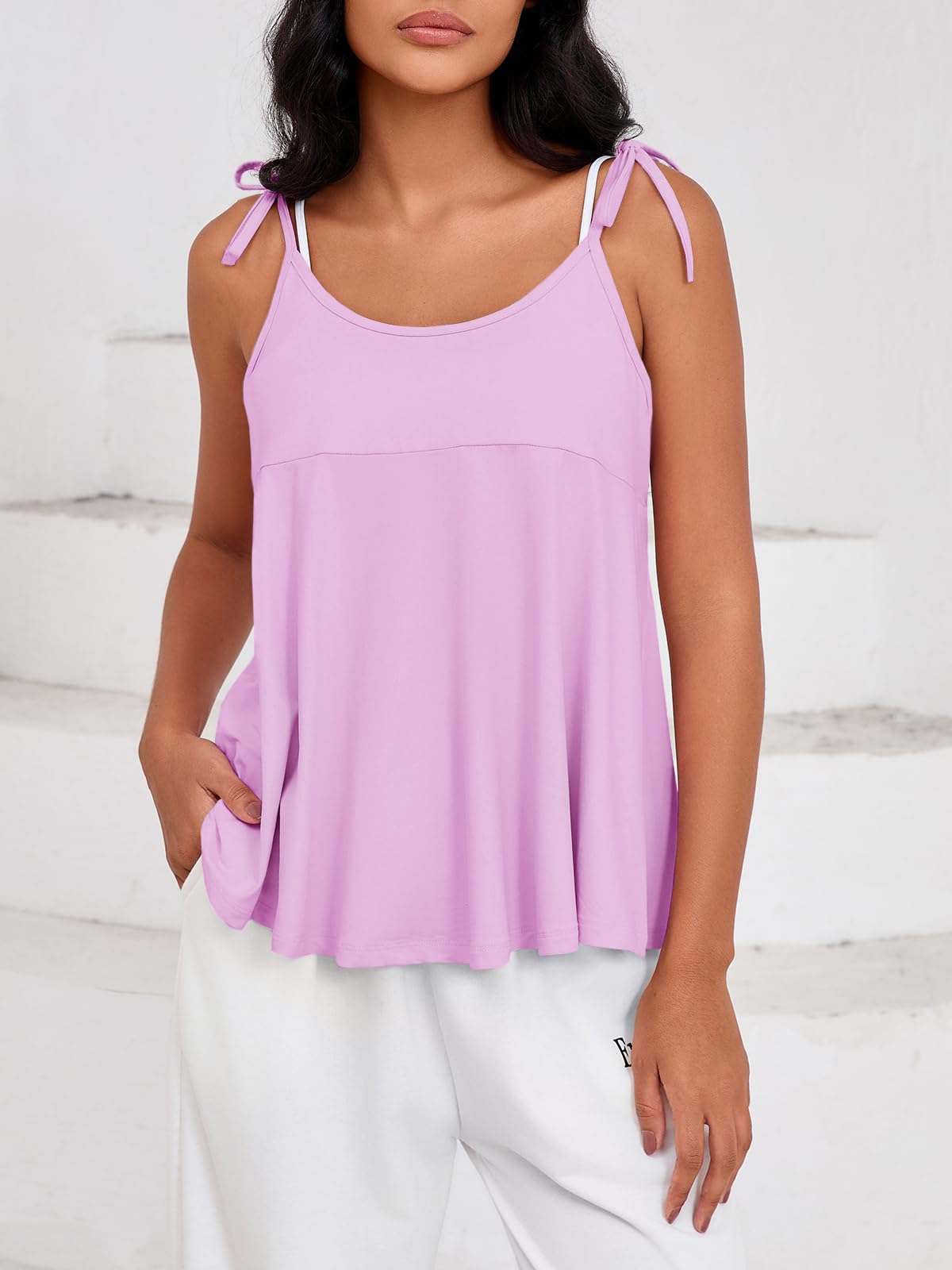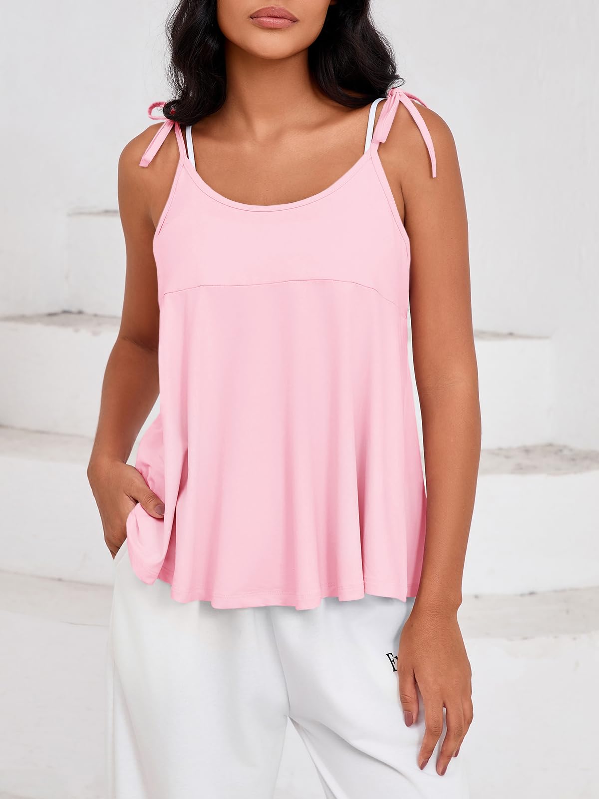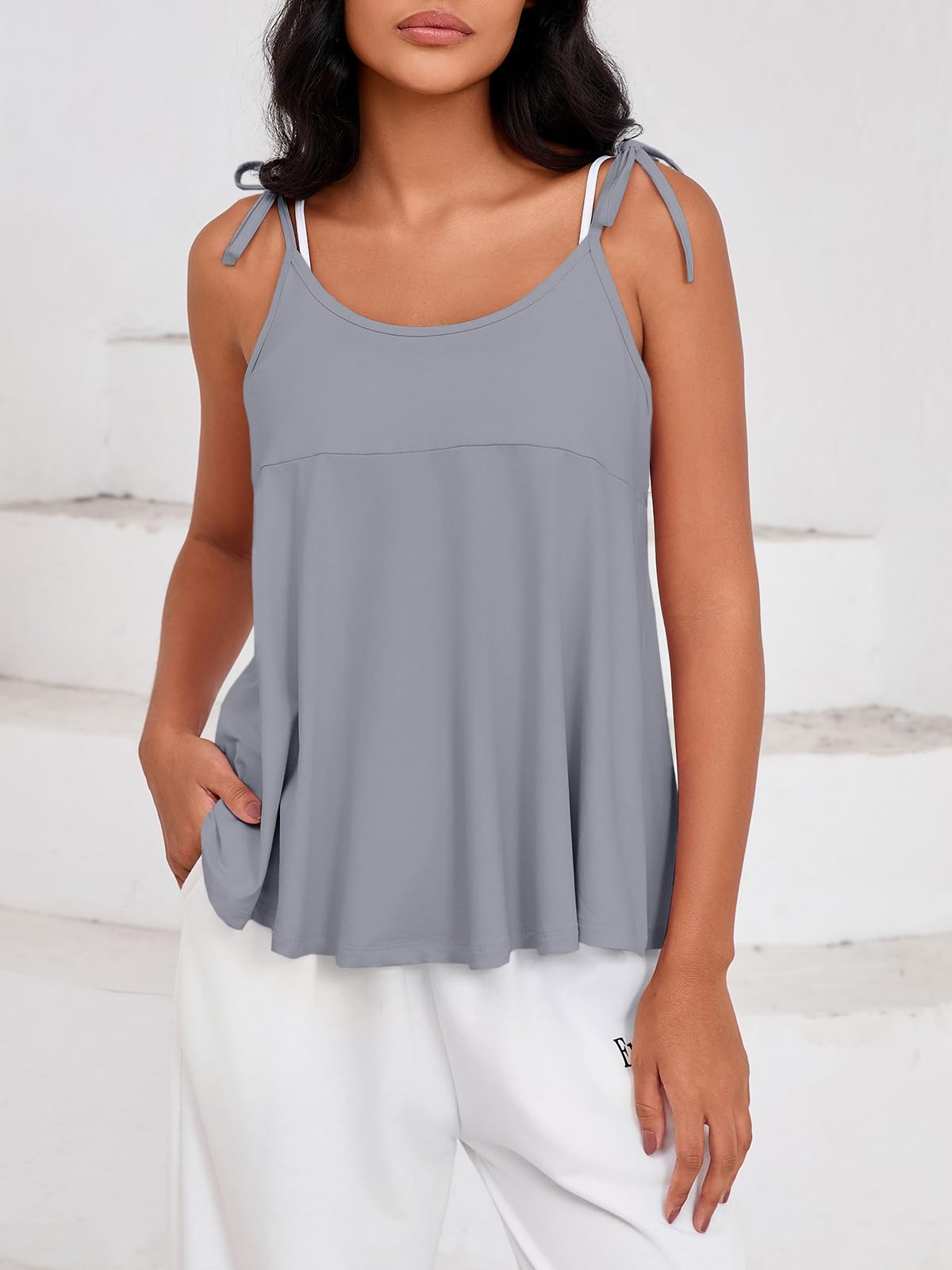 - Self-Tie Straps: This loose fit trendy top features self-tie spaghetti straps that can be freely adjusted for a personalized fit